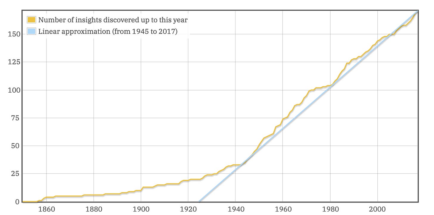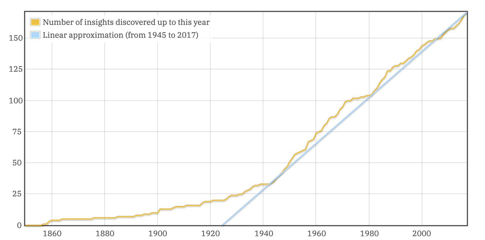 They look at such historical data and estimate that the number of insights being found each year is going up roughly linearly:
